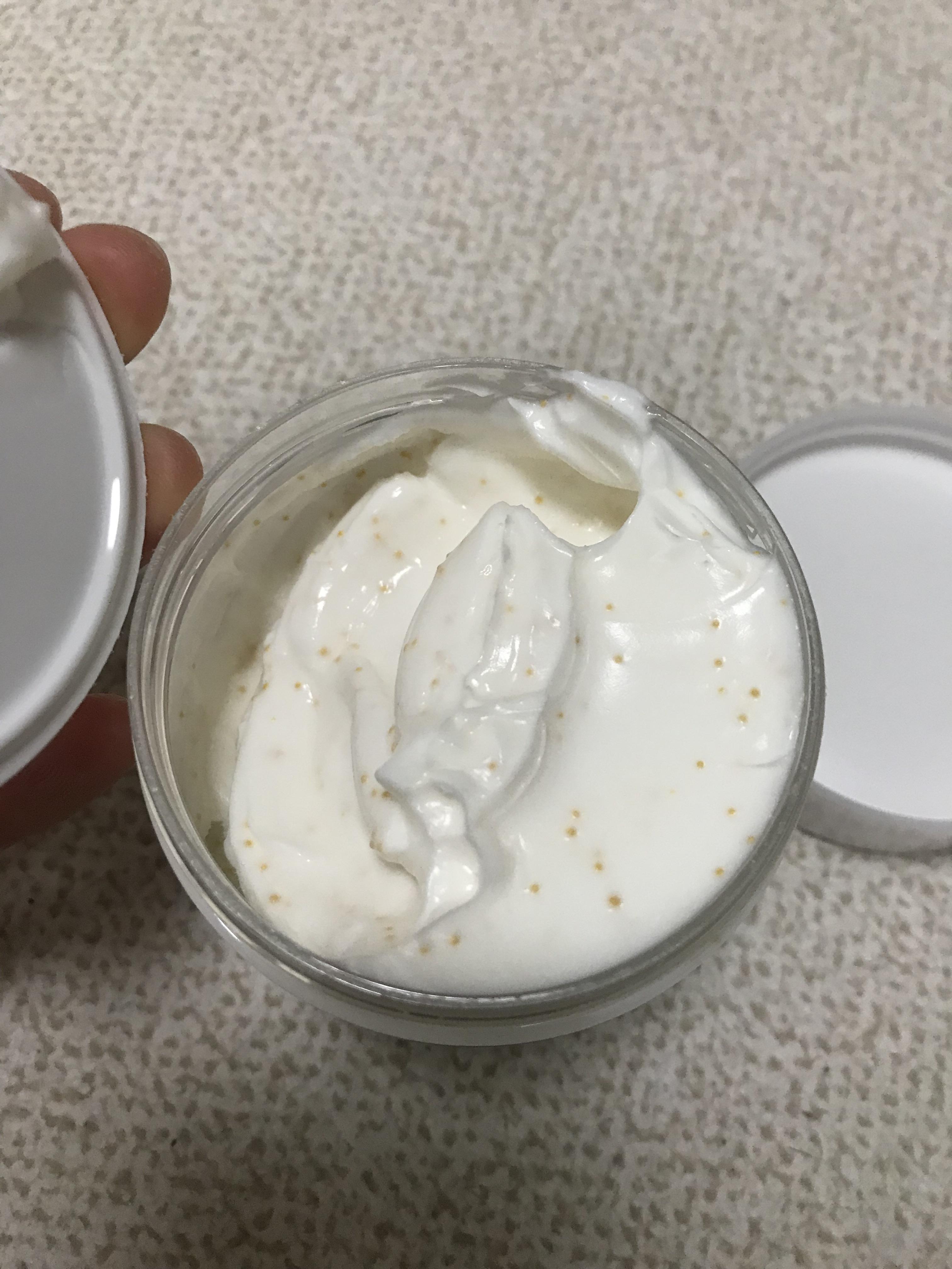 용기를 열고 덮개를 제거하면 오렌지색 알갱이가 섞인 아이보리색 크림이 가득 들어있어요. 바로 요 오렌지색 알갱이가 피부에 자연스럽게 녹아들면서 엘리자베스아덴 그린티만의 부드럽고 상큼한 향이 은은하게 퍼진답니다. 너무 가볍지않고, 시큼하지 않은 그런 향. 하루종일 은은하게 퍼지는 향으로 기분도 업! 오래가는 향의 바디로션을 찾으셨던 분들이라면 꼭 한번 사용해보시길 추천 드려요.