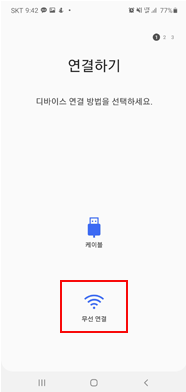 2) 기존 폰에서 '연결하기-무선연결'을 클릭하고, '복사하기'를 허용합니다.