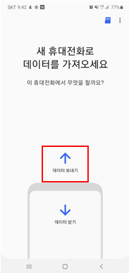 1) 스마트 스위치 앱을 열고, 기존 폰에선 '데이터 보내기'를, 새로운 폰에선 '데이터 받기'를 클릭합니다.