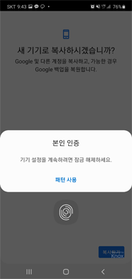 3) 기존 폰에서 기존 설정되어있는 잠금(지문/비밀번호 등)을 해제하고 데이터를 복사합니다.