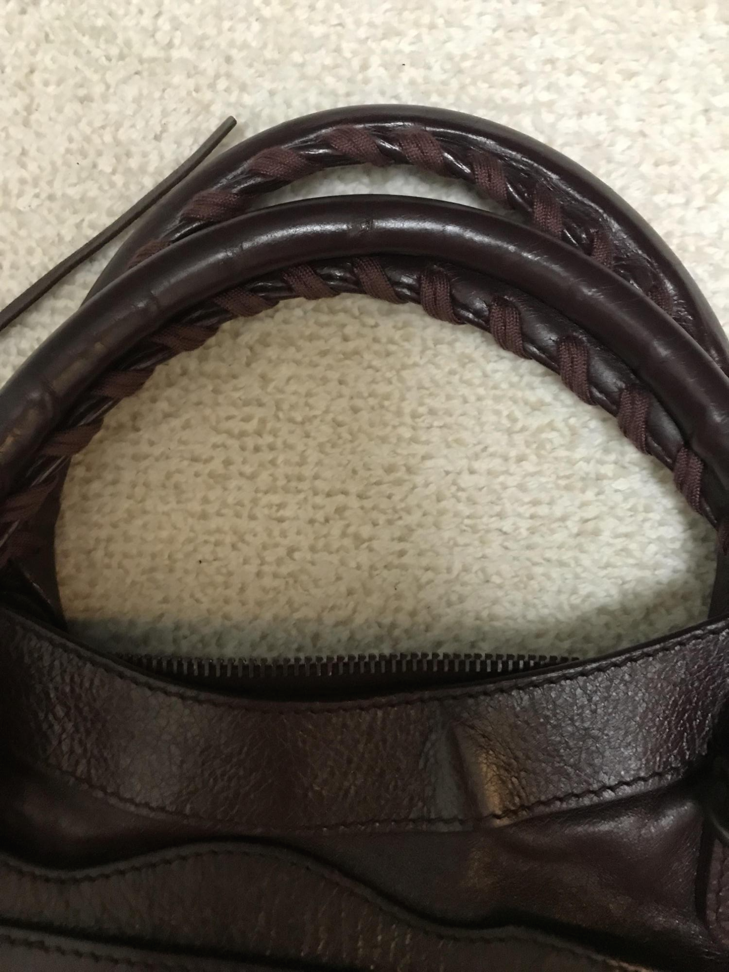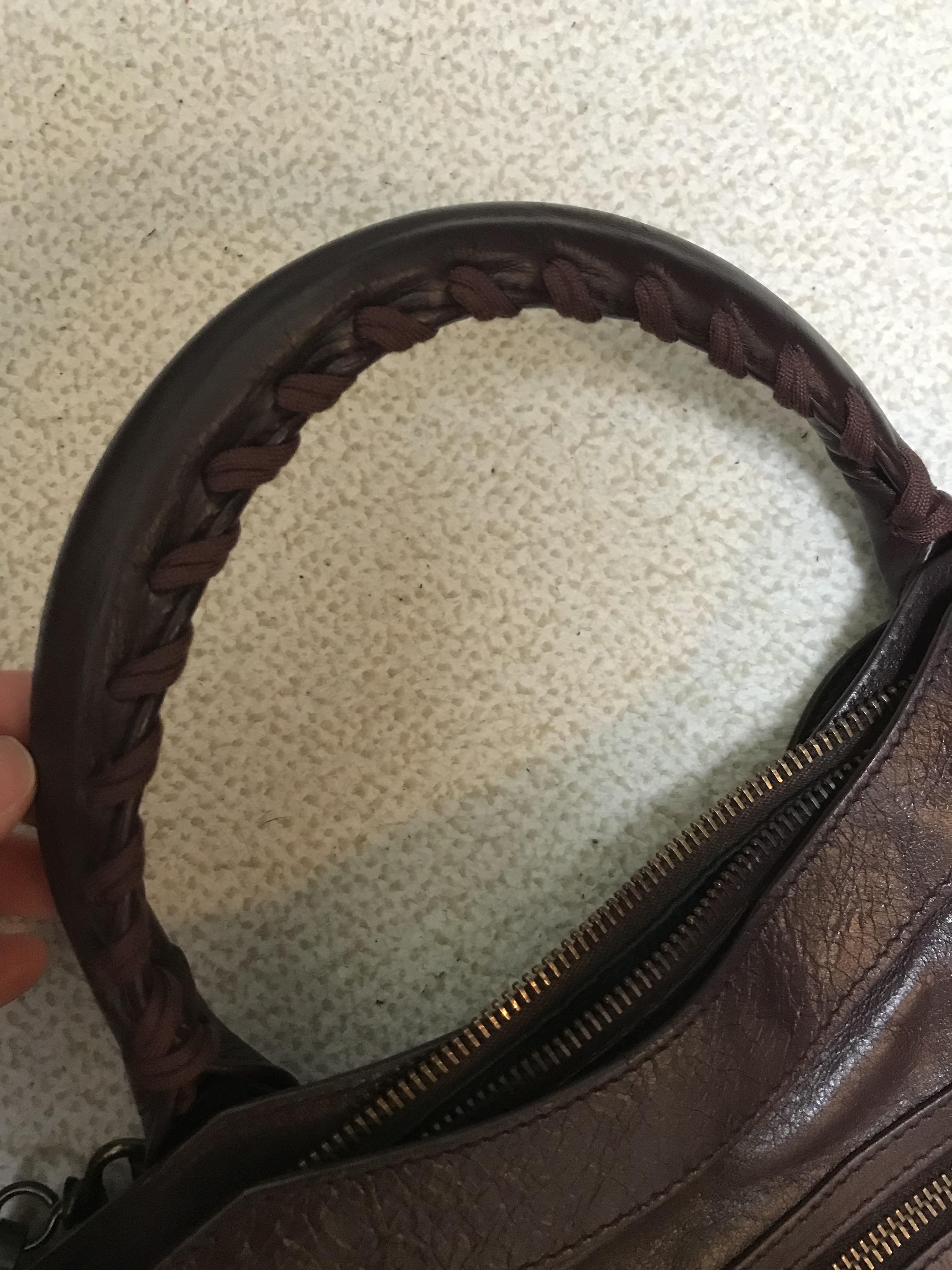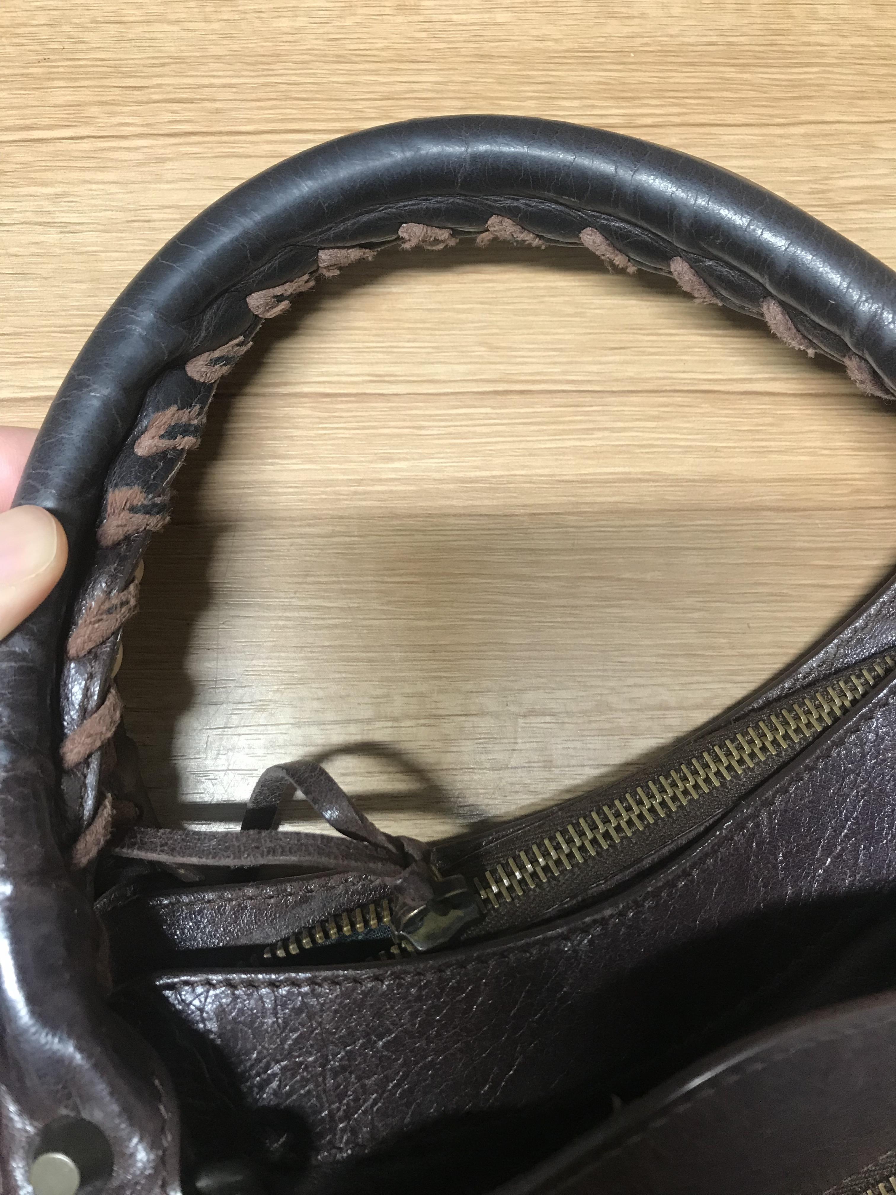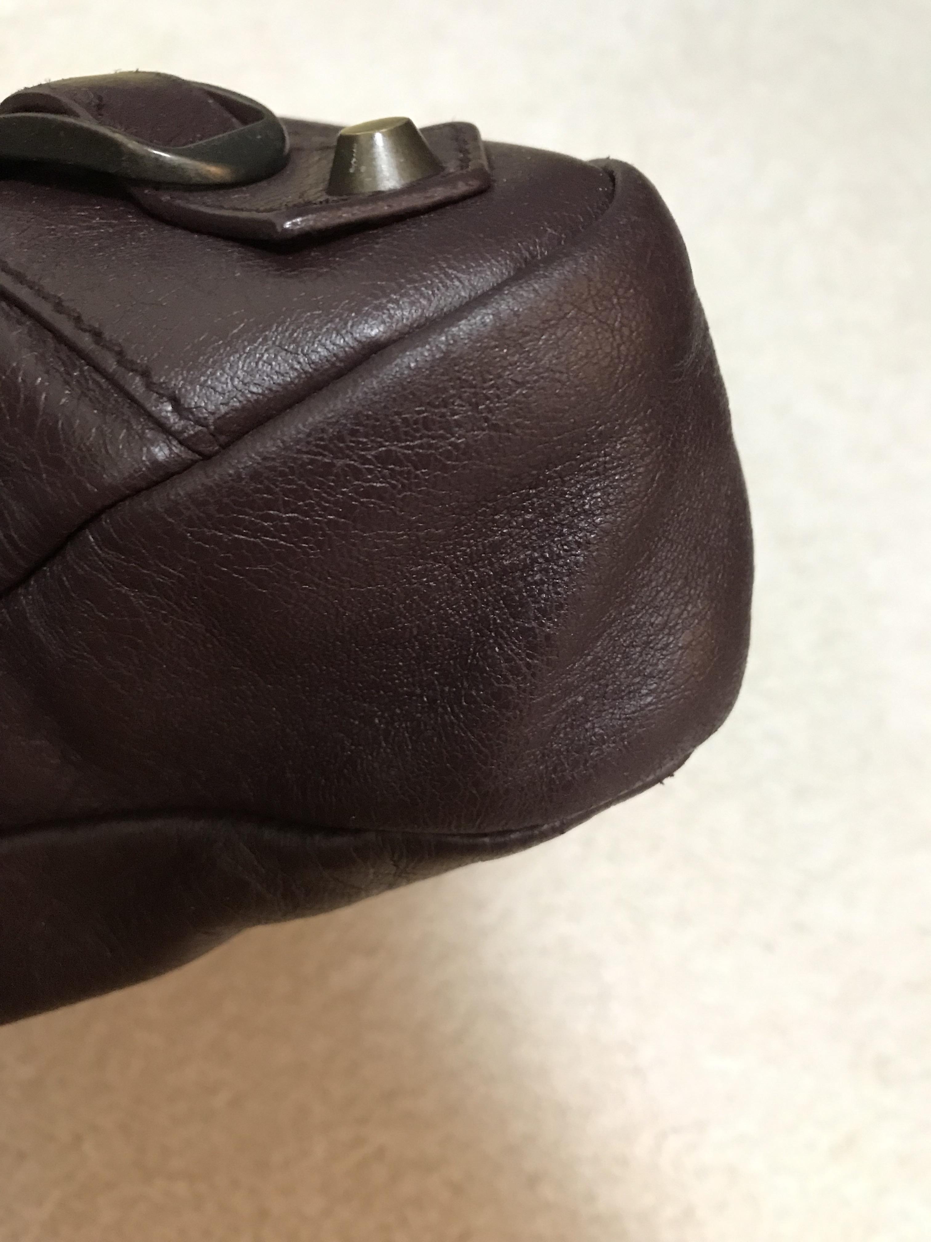저의 가방 상태는 일단 사진과 같이 가죽이 많이 낡고, 가방 핸들부분의 끈이 헤진 상태였어요. 모터백 디자인 특성상 핸들이 손상되는 케이스가 흔하다고 하더라구요. 그리고 가죽상태도 땀과 외부요인에 의해 많이 낡은 상태여서 컬러도 균일하지 않고 많이 얇아진 상태였답니다. 다행히 핸들부분이 두껍게 제작된 디자인으로 끊어진 상태는 아니라 가죽염색과 끈 교체만 하면 새것처럼 될 꺼라고 하셨어요.