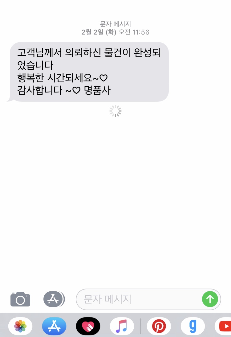 수선 완성까지는 약 2주정도 걸린다고 하셔서, 마음 놓고 기다리던 중 반가운 문자가 똭! 퇴근하면서 가방을 픽업하러 명품사로 달려갔어요.