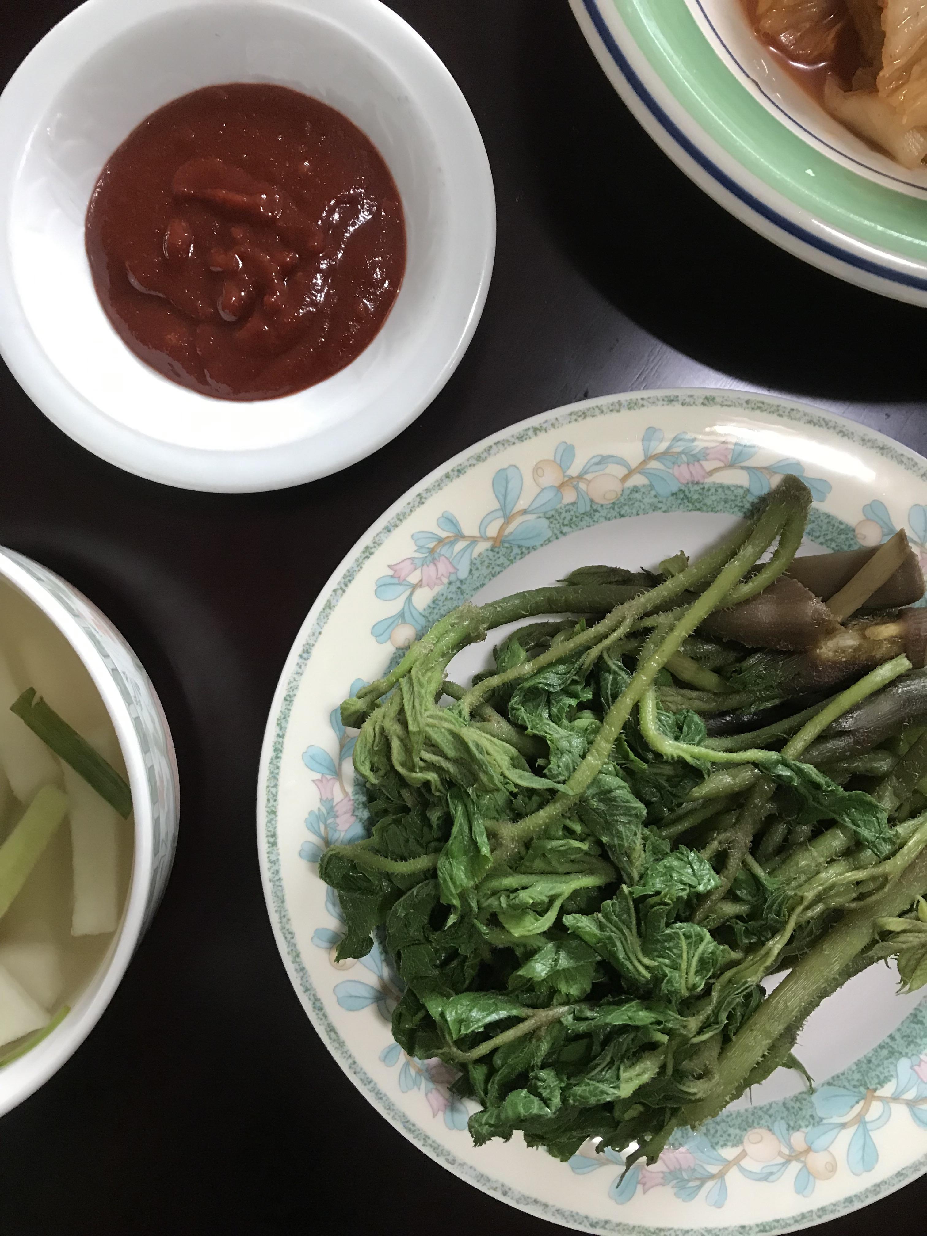 자, 대친 두릅 완성!!! 생 두릅보단 숨이 조금 죽어 먹기 좋은 사이즈가 되었네요. 이제 초고추장에 찍어먹으면 됩니다. 맛은 쌉쌀하고 고소함이 느껴져요. 개인적으론 해산물인 멍게를 먹었을때 느꼈던 그런 쌉쌀함이었답니다. 동시에 신선한 향도 나는데, 봄의 상큼함이 느껴지는 맛이었어요. 정말 딱! 봄에 먹는 봄나물향~