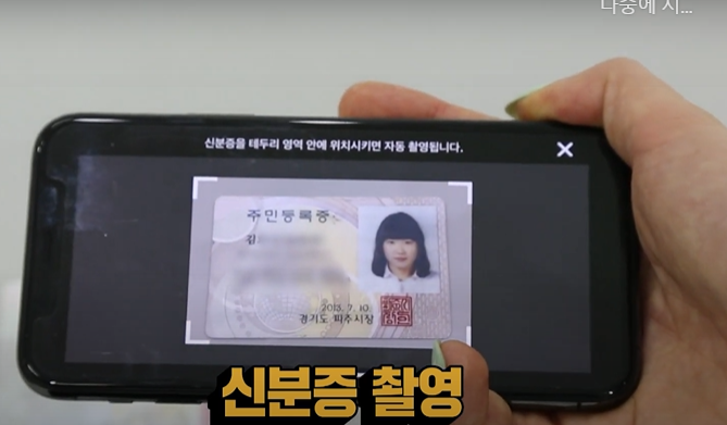 3. 추가 본인인증을 위해 신분증(또는 운전면허증) 촬영을 진행합니다.