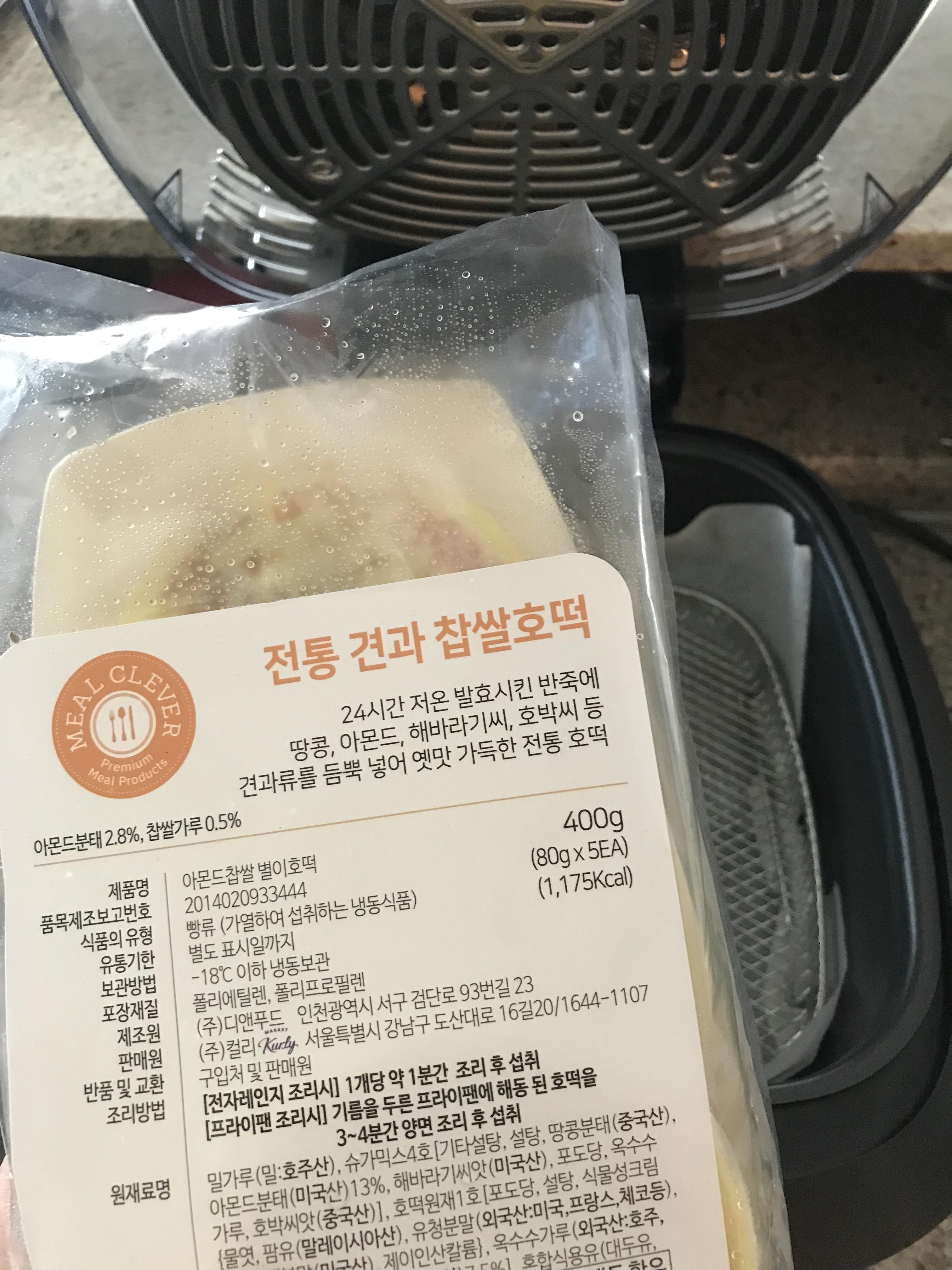 낮에 간식으로 구워본 호떡이에요. 냉동호떡인데, 프라이팬에 기름 튀는 것이 싫어서 드롱기 에어프라이어로 살짝 구워봤어요. 역시 유산지를 깔아주고(호떡의 경우 기름기가 없으니 유산지를 생략해도 괜찮을 듯요) 약 20분을 구워 주었답니다.