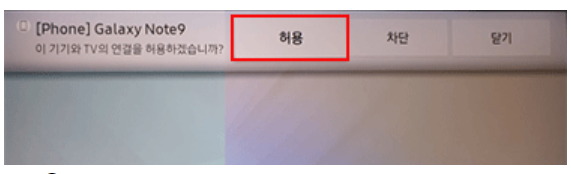 이후 TV화면 상단에 스마트폰 닉네임이 표시되고, '허용'여부를 묻는 창이 나타나면, TV 리모콘으로 선택해줍니다.