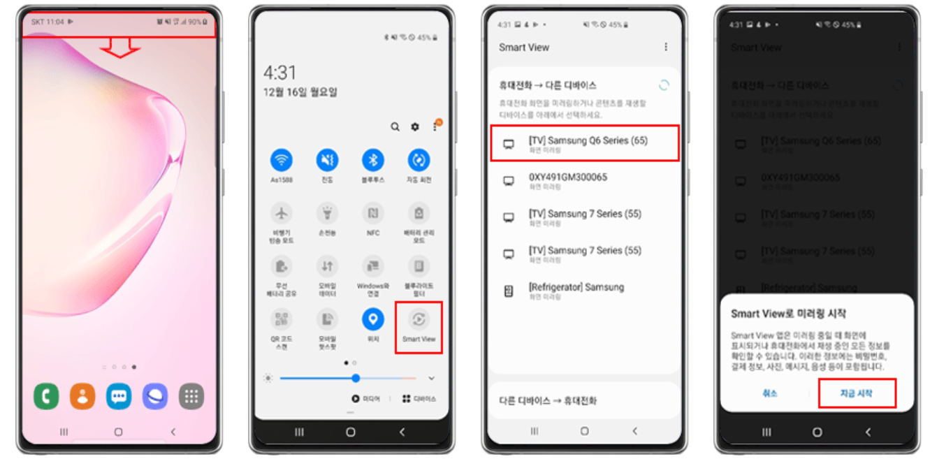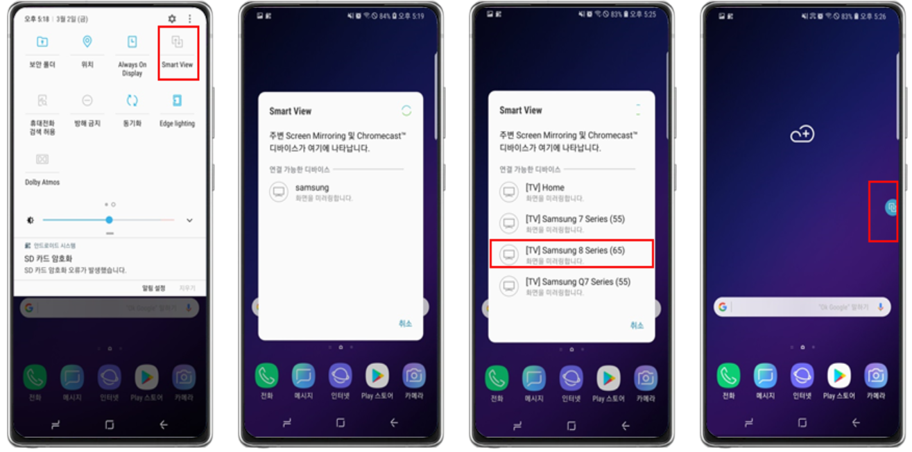1) 스마트폰 알림창을 열고 'Smart View' 스마트뷰를 클릭하고 실행합니다.