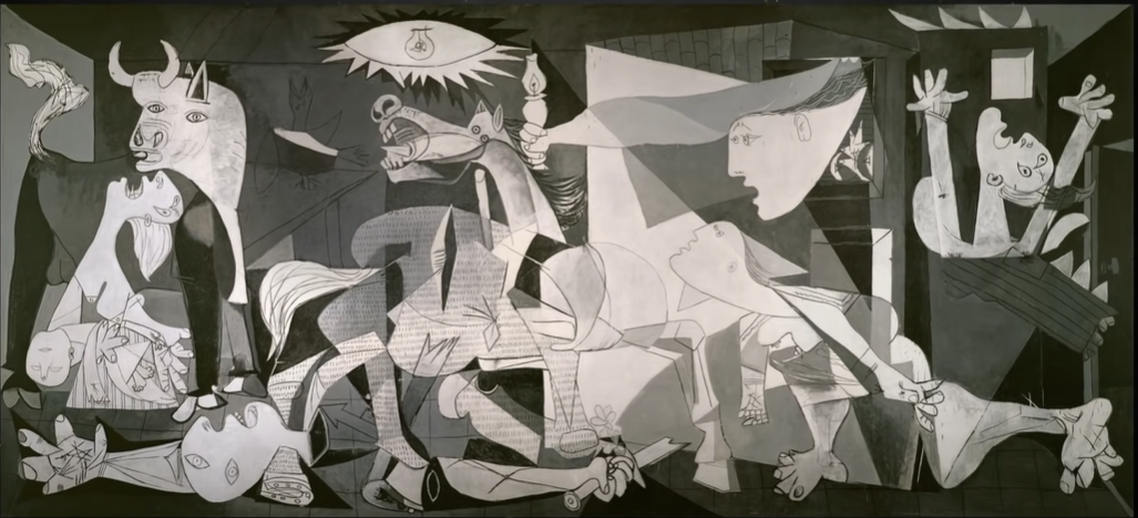 그래서 사회의 참상을 고발하고 반영한 그의 작품들을 어렵지 않게 찾아볼 수 있는데요. 그의 대표작 중 하나인 게르니카(1937년)도 피카소가 태어난 스페인의 내전을 기록하고 있습니다. 무채색 어두운 색깔로 비극을 표현하고 있죠.