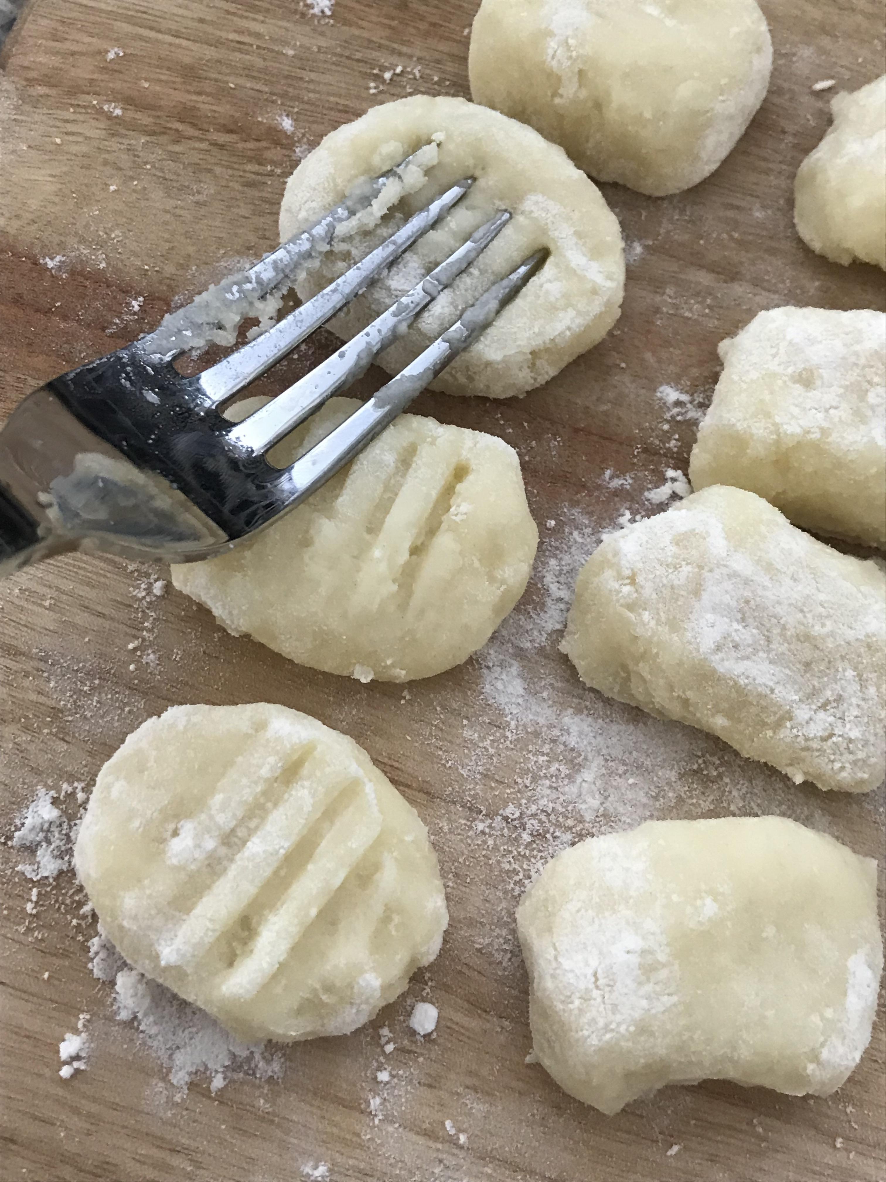 동글동글한 뇨끼위에 포크를 적당히 눌러 삼지창 모양을 내 주는 것인데요, 은근 재미있는 과정이었어요. 너무 꽉 누르면 모양이 무너지니 살살 적당한 힘을 주어 모양내어 주시는 것이 포인트에요. 이렇게 만들어 놓은 감자뇨끼는 냉장고에 약 한시간정도 두어 숙성 후 요리해 드시면 됩니다.