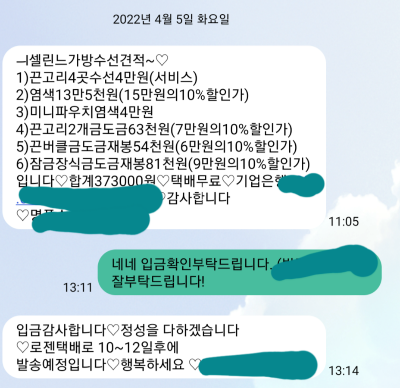 (그리고 원래 수선비용을 안내 받은 후→동의 하고 수선을 결정하면→수선 진행하고→수선 완료 후 비용 송금하고→물건을 돌려받는 절차인데, 저는 그냥 먼저 송금해버린 거예요. 뭐 어차피 내야 할 돈이니까ㅎㅎ 쿨하게 결제 먼저!)