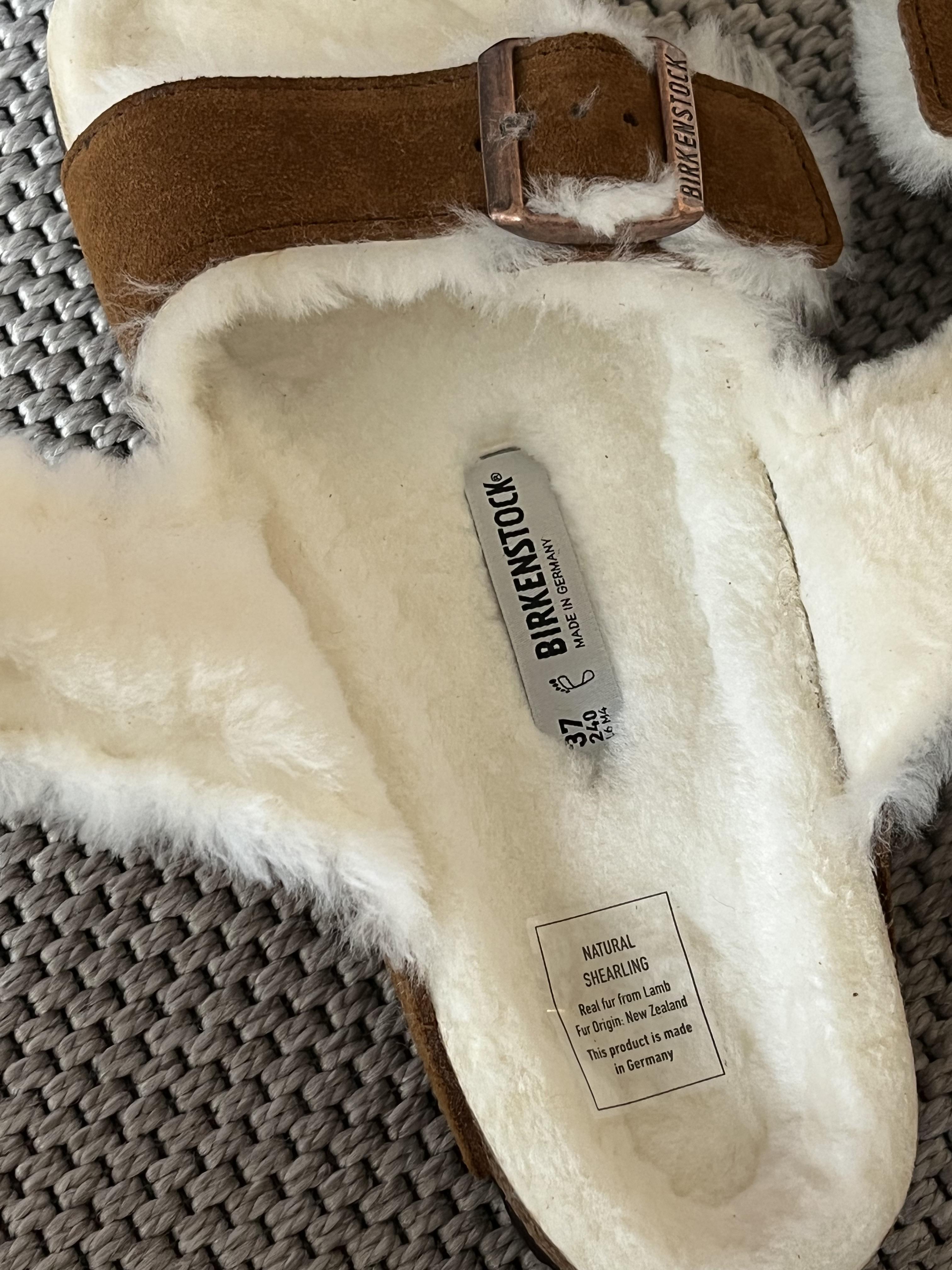 생각보다 풍성한 양털. 바닥, 스트랩 안쪽까지도 모두 양털~신으면 정말 폭탁할것 같아요. 바닥쪽 스티커에는 'Natural Shearling'이라고 적혀있답니다. 관리만 잘해주면 어그처럼 매년 포근하게 신을 수 있을것 같아요.