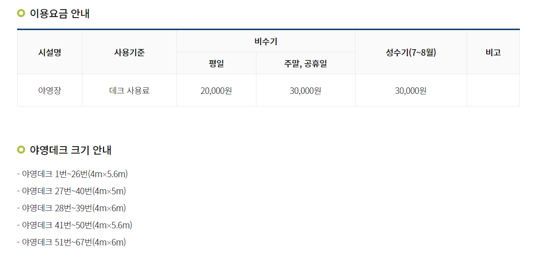예약하시려면 서두르셔야 겠네요. (성수기의 경우 주말 데크는 예약이 일찍 마감된다고 해요)