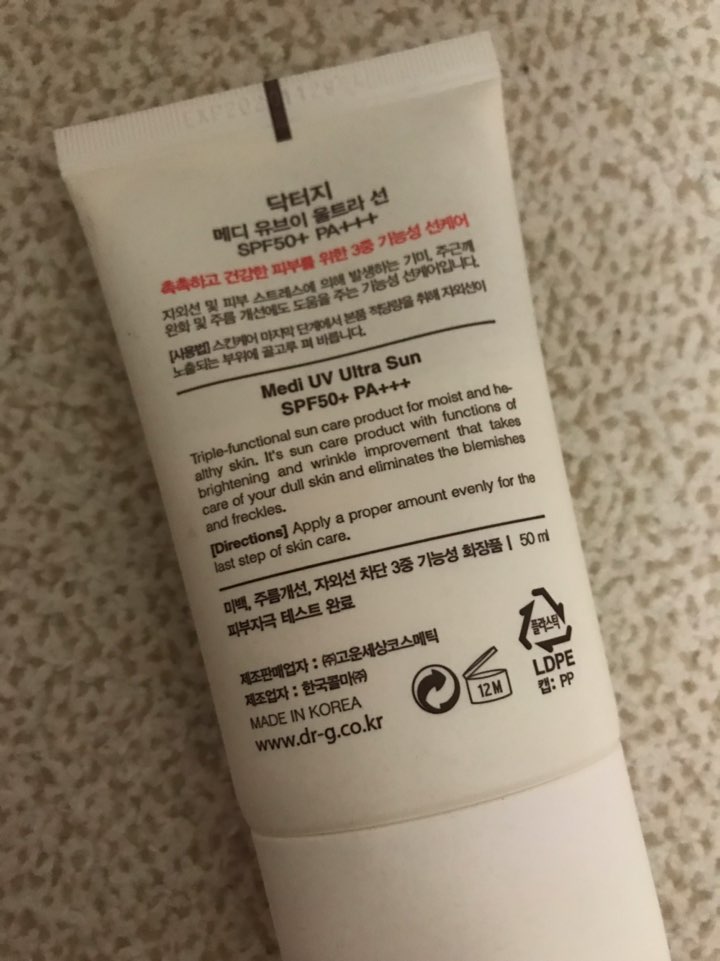 그동안 사용했던 제품들은 뻑뻑하거나, 너무 두껍게 발리고, 끈적거리는 특징들이 있었는데 닥터지 메디유브이 울트라선은 로션처럼 발림성이 부드럽고 끈적이지 않아서 데일리로 사용하기 좋았어요.