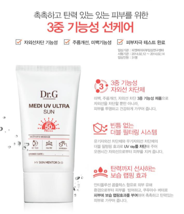 저는 닥터지 선크림중 기능성과 발림성, 다른 메이크업 제품과의 호환성을 고려해서 메디유브이 울트라선 제품을 선택했답니다. 특히 자외선 차단률이 SPF50+/PA+++ 인 제품으로 강력한 차단효과가 있어 여름철 강한 햇빛 아래서도 효과적으로 피부를 보호할 수 있을 것 같아요.