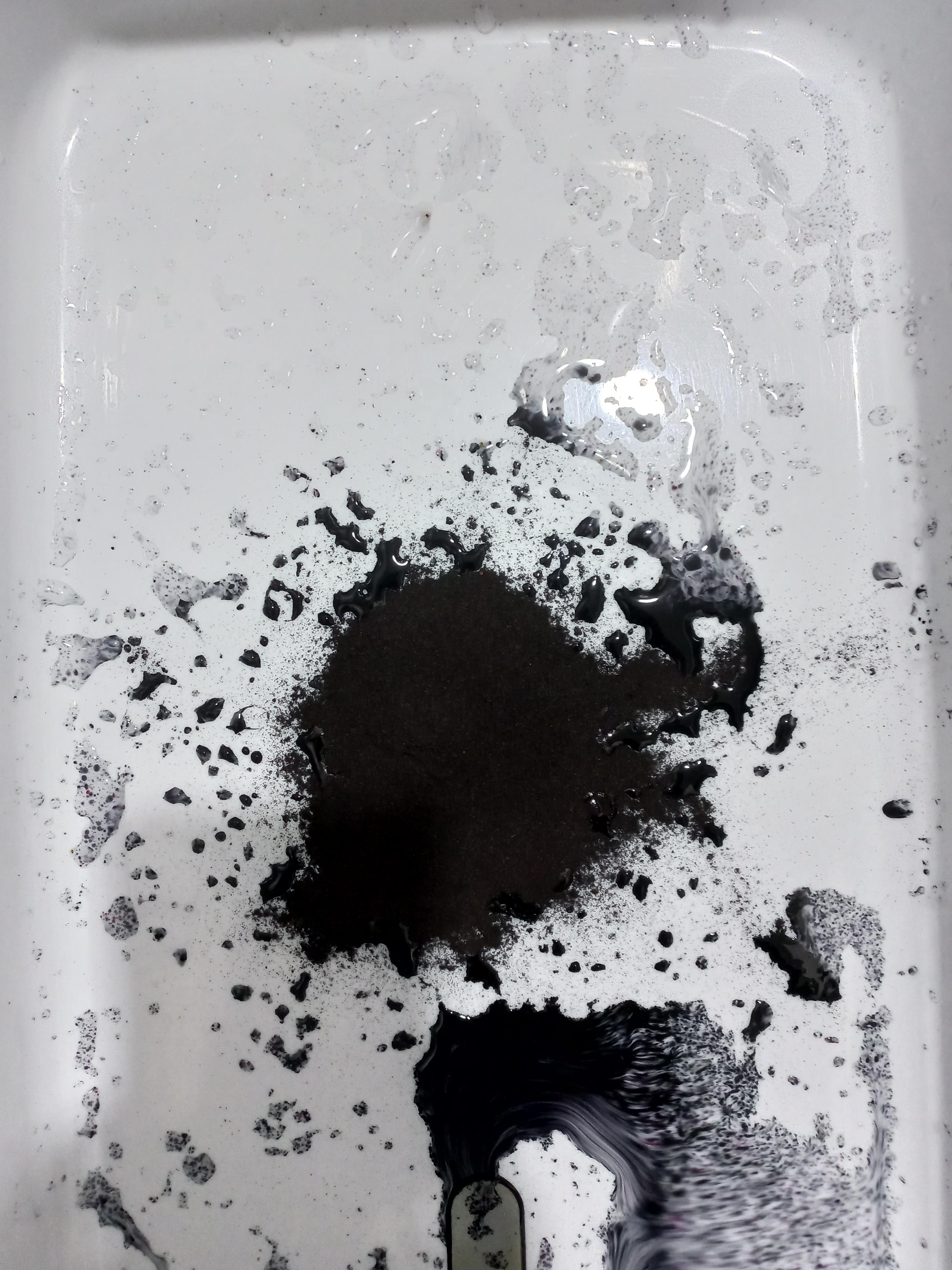 과정은 간단합니다. 염색제 가루를 탈탈 털어 뜨거운 물에 풀어 녹여주고, 염색할 옷을 담가놓고 조물조물!