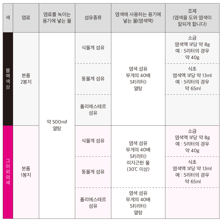 염색에 필요한 준비물/물의 양