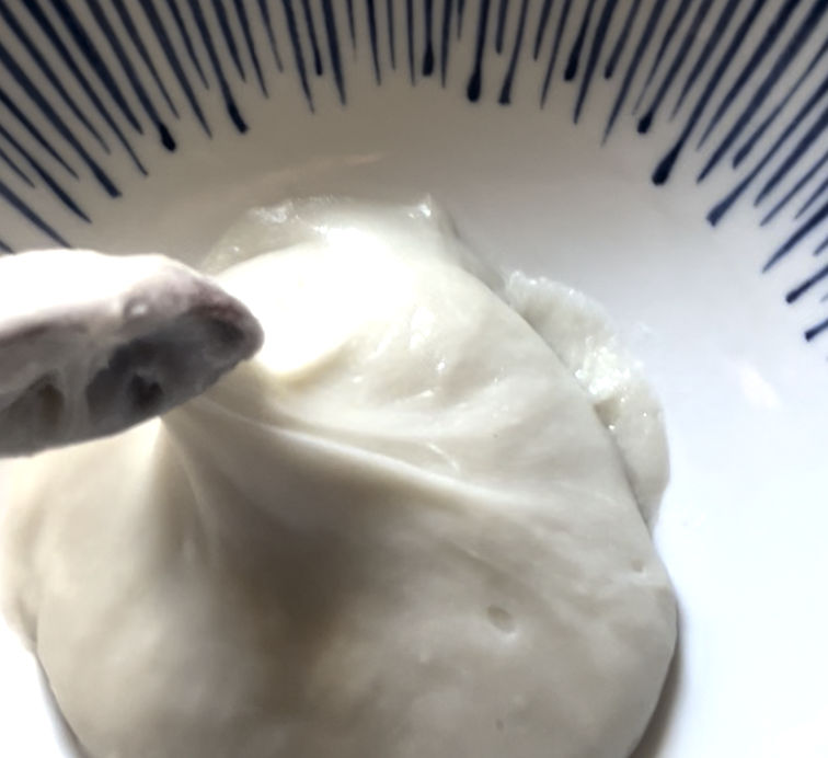 오른쪽처럼 뭉쳐진 다음에도 몇 분은 더 뒤적뒤적 치대면서 저어준 거 같아요.