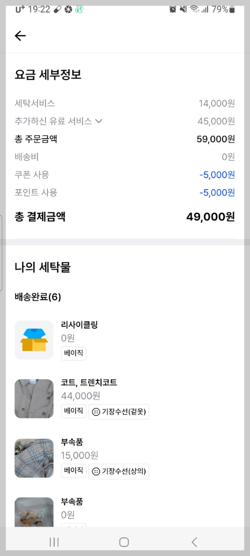 ▶당연하게도, 청구된 요금을 확인 후 결제 완료해야만 세탁/수선 서비스가 시작됩니다.