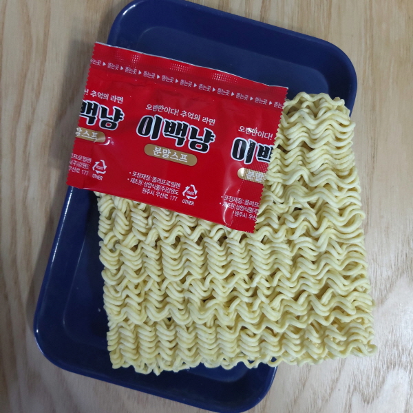 그 때 그 시절의 이백냥을 다시 먹을 수 있다니! 그런데 제가 맛있게 먹었던 기억만 있는데, 원래 면발이 좀 가는 편이었나요? 스프 원래 한 봉지였나요?
