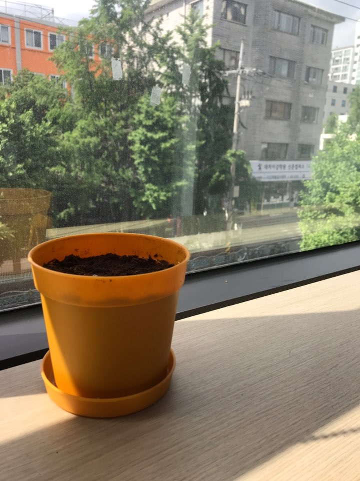 - 흙넣기: 화분에 흙을 붓고 물조리개를 이용해 충분히 적시기(라고 쓰여있으나 물조리개 대신 컵을 사용했구요, 성격이 급해 물보다 씨앗을 먼저 심어버렸네요 ㅎㅎ크게 상관은 없을 듯 하지만 안내대로 하는게 좋겠죠?ㅎㅎ)