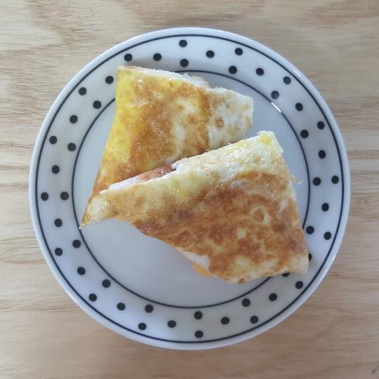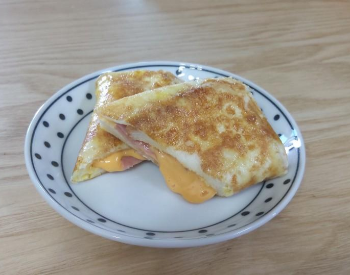그런데 사실 집에서 내가 만들어서 내가 먹는 건데 모양이 그다지 중요한 건 아니잖아요? 반달이든 네모든 만들기 간편하다는 건 분명하고, 맛도 좋습니다. 아침식사나 주말 아점으로 먹기 좋아요.