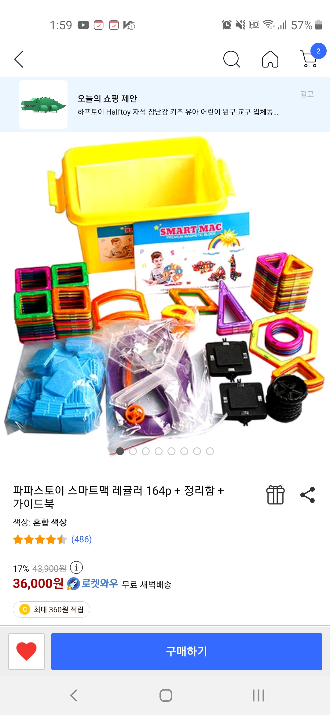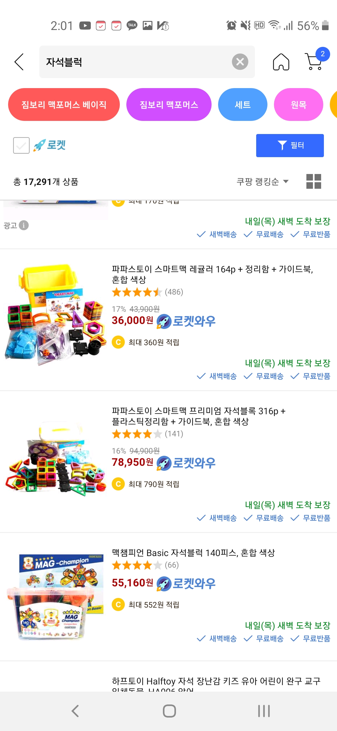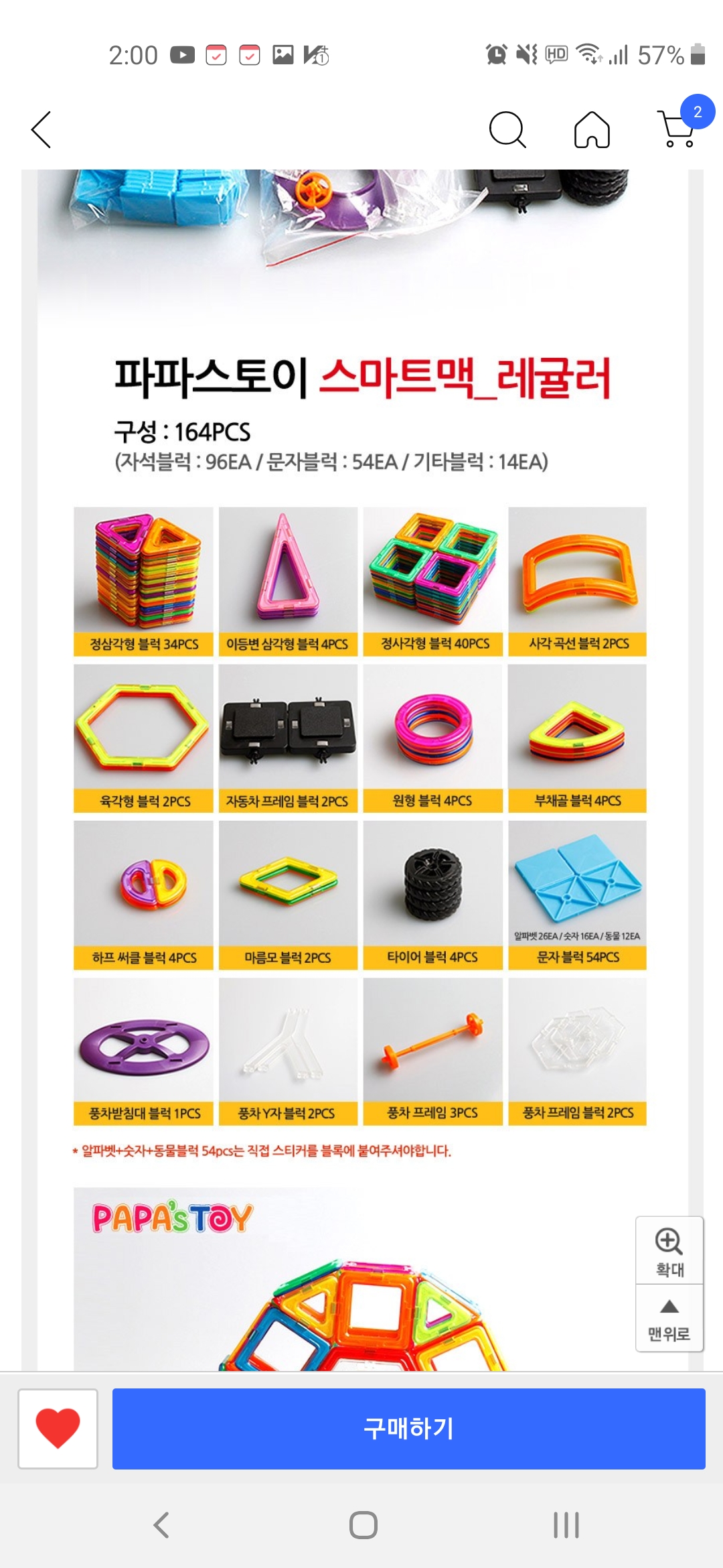 현재(오늘 기준) 쿠팡에서 자석블록을 검색해보시면 비슷한 구성으로 된 유아장난감 카텍리 자석블럭 제품 중 스마트맥이 상위랭크된 것을 보실 수 있어요. 합리적인 가격 대비 구성품이 충분하고 활용도가 높아서이지 않을까 생각해봅니다.