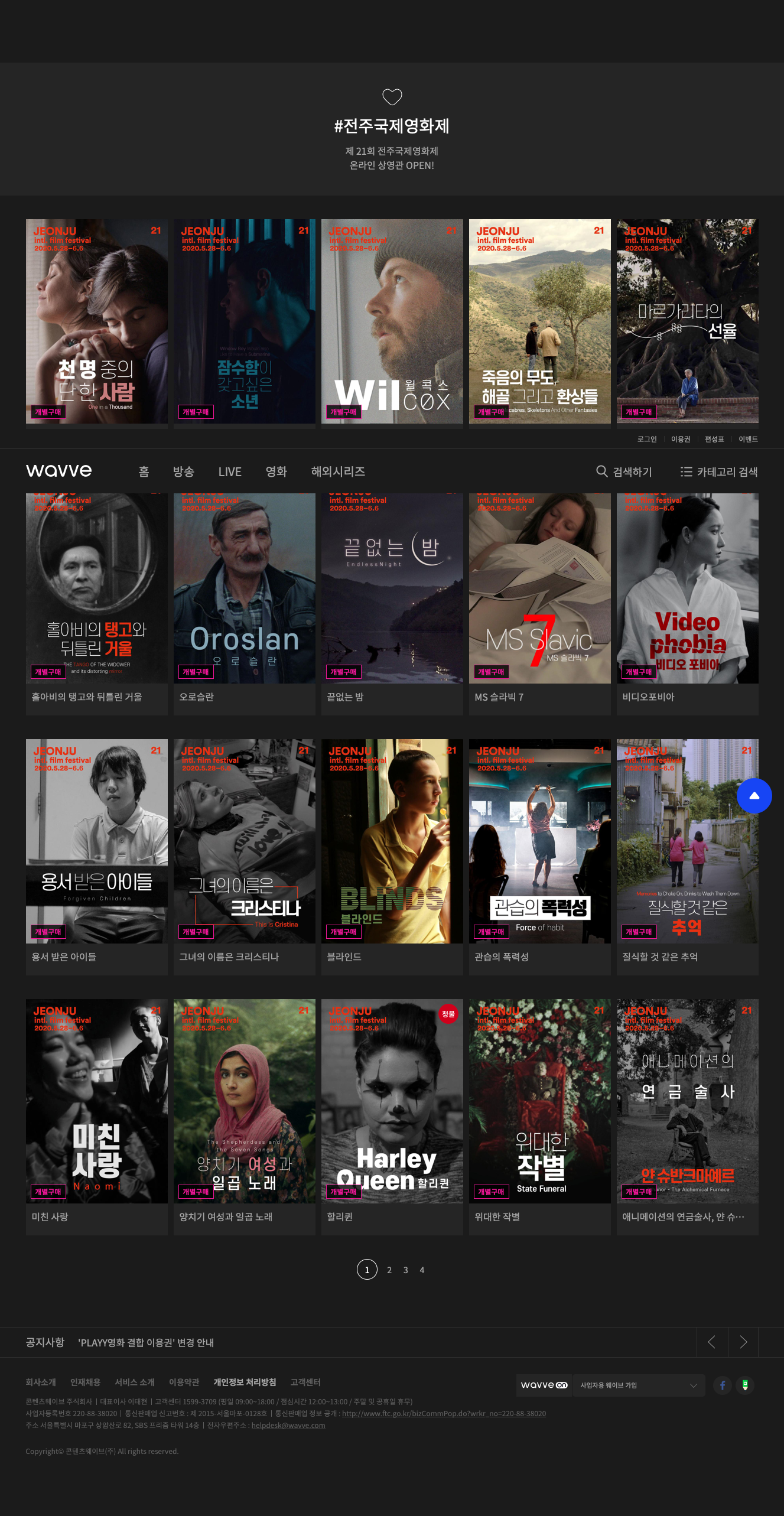 전주국제영화제 온라인 상영관(wavve)