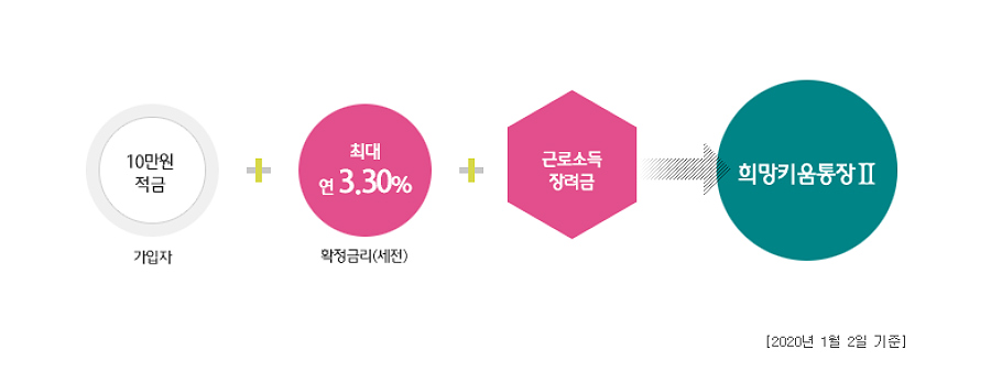 희망키움통장 II는 아래의 2가지 조건이 모두 충족되어야 가입가능합니다.