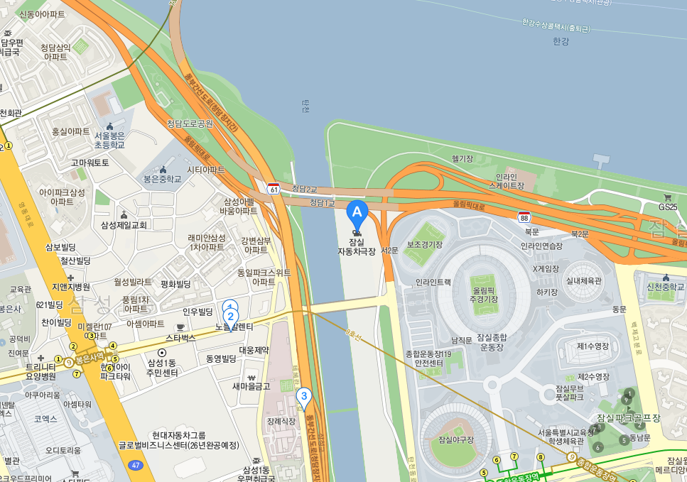네비게이션에서 "잠실자동차극장"을 찾으면 위치정보를 확인하실 수 있어요!