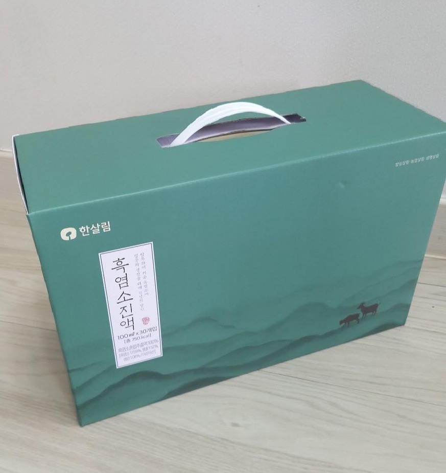 한살림 흑염소진액은 1박스에 30포가 들어있어요. 1포당 100ml고요. 매일 1~2회 음용하는 것이니까 대략 1인 기준 1개월분입니다. 사실 동네 건강원 가격은 안 알아봤지만 인터넷 온라인 쇼핑몰에선 이보다 더 저렴한 가격대의 흑염소진액도 많이 있더라고요. 하지만 무엇보다도 건강하자고 먹는거고, 부모님 건강식품으로 선물해드리는 거라 조금 비용을 더 지불하더라도 재료관리부터 제조과정까지 검증된 곳에서 구입하고 싶었습니다.