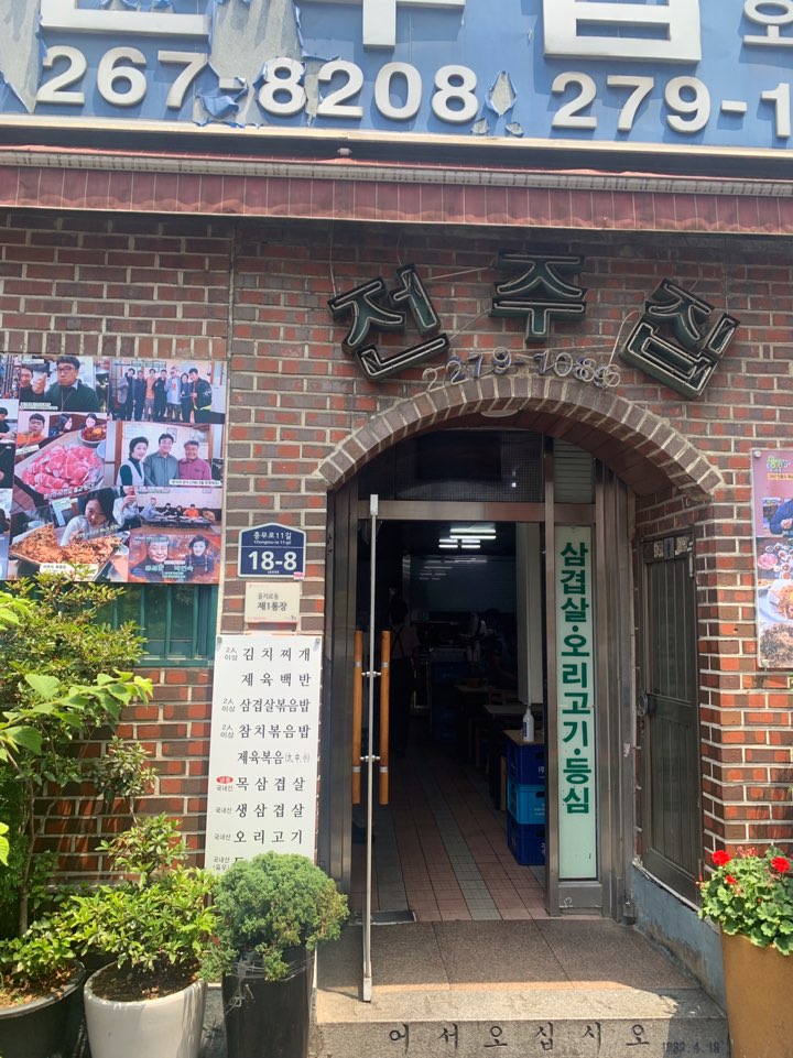 '연회석 완비'가 적힌 오래된 간판 보이시죠? 저녁에는 간판아래 '전주집' 네온사인까지 더해져 힙한 옛감성 가득한 외관으로 변신한답니다.ㅎㅎ 저녁에는 퇴근길 직장인들의 발길로 웨이팅은 필수라고 하니, 덜 붐비는 낮시간 방문도 추천드려요.