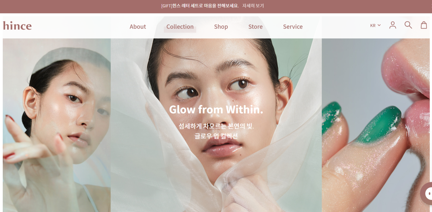 이미지만으로도 힌스의 아이덴티티가 느껴지지 않나요? 과하지 않고 자연스러운, 요즘 핫한 꾸안꾸룩에 딱 맞는 느낌의 메이크업이 가능한 제품들로 구성되어 있어요.