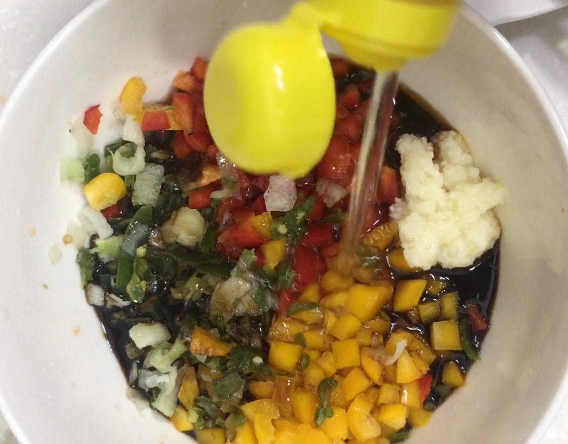 레시피상으로는 종이컵 기준으로 식초반컵. 물 반컵, 진간장 3큰술, 설탕1큰술, 다진마늘 1큰술이고 고추기름용으로 대파 마늘 생강 식용유를 사용합니다. 하지만,