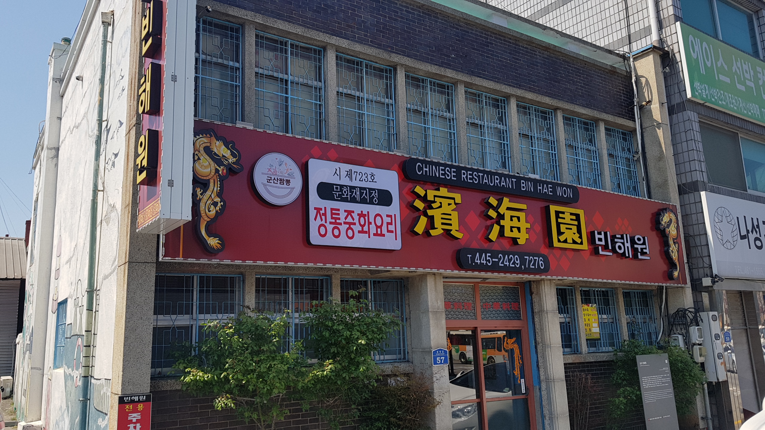 복성루만큼이나 인기있는 대표적 맛집이에요. 한국인의 밥상에 빈해원 짜장면이 소개됐고, 저는 못봤지만 맛있는녀석들에도 나왔다고 하네요. 물짜장 등 메뉴도 유명하지만 이곳은 가게 건물이 옛날의 모습을 그대로 유지하고 있어 군산시 문화재로 등록되어 있다고 해요. 1965년 콘크리트와 벽돌을 사용하여 지은 2층 건물인데 1~2층이 개방된 형태로 각 층에 여러 방이 있는 독특한 구조라고 합니다. 한국전쟁 이후 군산에 정착한 화교가 개업한 곳으로, 근대기 군산에 정착한 화교 문화를 볼 수 있는 곳으로 문화적 가치가 있다고 하고요.