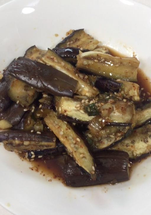 그리고 남겨둔 양념으로 무쳐주면 끝. 가지는 물이 많은 채소라 구워냈는데도 벌써 살짝 물이 생겼네요.