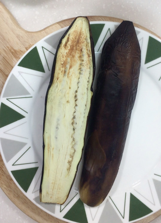 잘 씻어서 꼭지부분을 떼어낸 - 잘라낸 가지는 반으로 갈라서 찜기에 5분 정도 쪄줍니다. 젓가락이 쑥 들어갈 정도로 찌면 되는데, 약간 덜쪄도 괜찮아요. 다만 가지는 꼭 이렇게 익혀서 먹어야 합니다. 익히지 않으면 솔라닌이라는 독성(감자싹에 있는 독과 같은) 때문에 복통, 구토, 설사를 일으킬 수 있다고 해요. 옛날엔 먹을 것이 귀하고 간식이 없을 때 밭에서 가지를 따서 바로 와구 먹었다는데, 괜찮았는지 아니면 배가 아팠는데 그런 얘긴 없는 것인지 모르겠어요. 아무튼 익혀 먹어야 합니다.