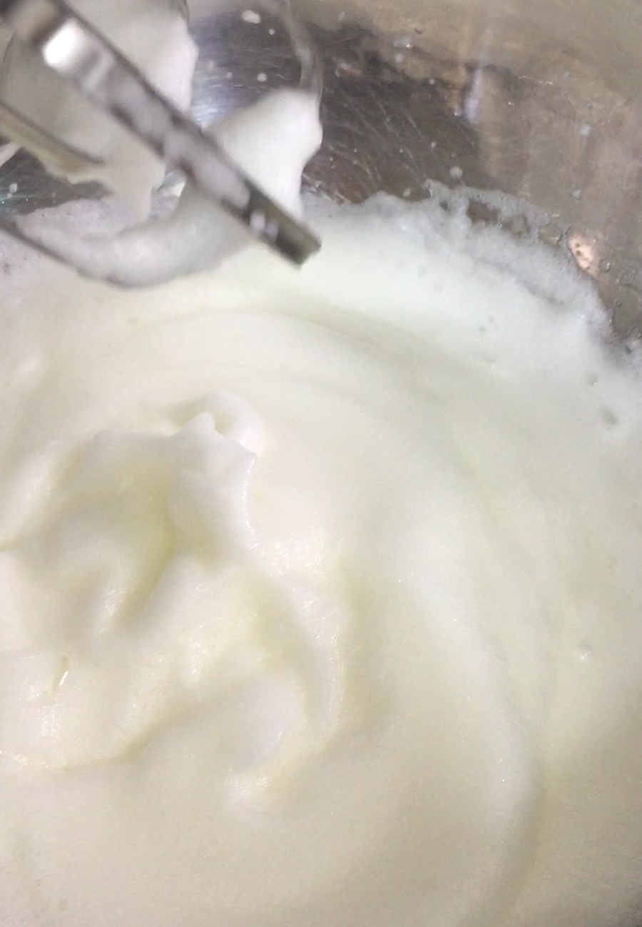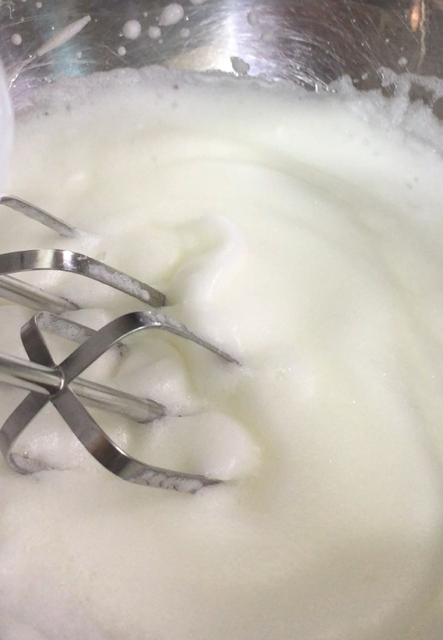 휘핑은 중간 단계 정도로 하는데요. 설탕을 추가하실 때는 중간중간 세번정도로 나눠서 넣어주시면 됩니다. 저는 설탕을 추가하지 않아서 쉬지 않고 휘핑!