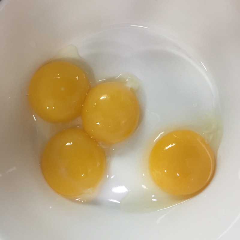 계란을 흰자와 노른자 분리합니다. 흰자는 휘핑해줄 거고 노른자는 적당히 섞기만 할 거예요. 노른자를 크림색이 되도록 휘핑해준다는 것도 본 거 같은데, 안했어요. 쉽게 할 거거든요. :)