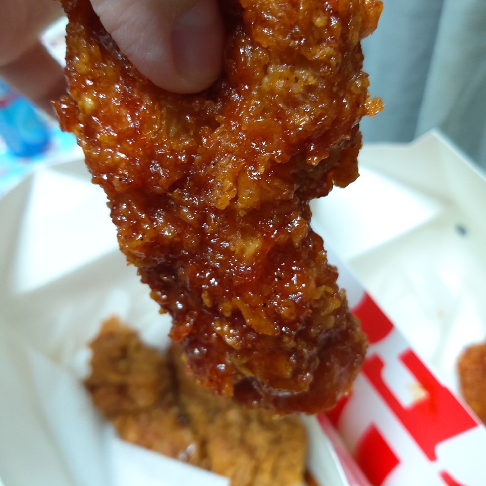 갓양념블랙라벨치킨부터 먹어봤는데요, 결론부터 말하면 '맛있었어요!' 페리카나 양념치킨과 비비큐 양념치킨을 좋아하는 분들이라면 만족하실 맛. 맵지 않고 달콤한 맛이 강한 편이에요(케찹 들어 있는 양념치킨 맛?) 다만 아무래도 양념이 묻어 있으니 바삭한 맛은 덜할 수밖에 없으니까요, KFC 특유의 크리스피함을 좋아하는 분들은 덜 선호하실 수도 있을 것 같아요.